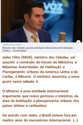 A indicação de Jáder Filho, Ministro das Cidades 'da cota do PMDB', para presidir o Fórum de Ministros e Máximas Autoridades de Habitação e Planejamento Urbano da América Latina e do Caribe, que traz a sigla orwelliana MINURVI, é a senha para que todos os latinoamericanos e caribenhos direta e indiretamente interessados na luta pela moradia social, a começar pelos próprios movimentos cidadãos, cuidem de organizar a sua própria entidade internacional, autossustentada e independente de Estados, governos e agências multilaterais.